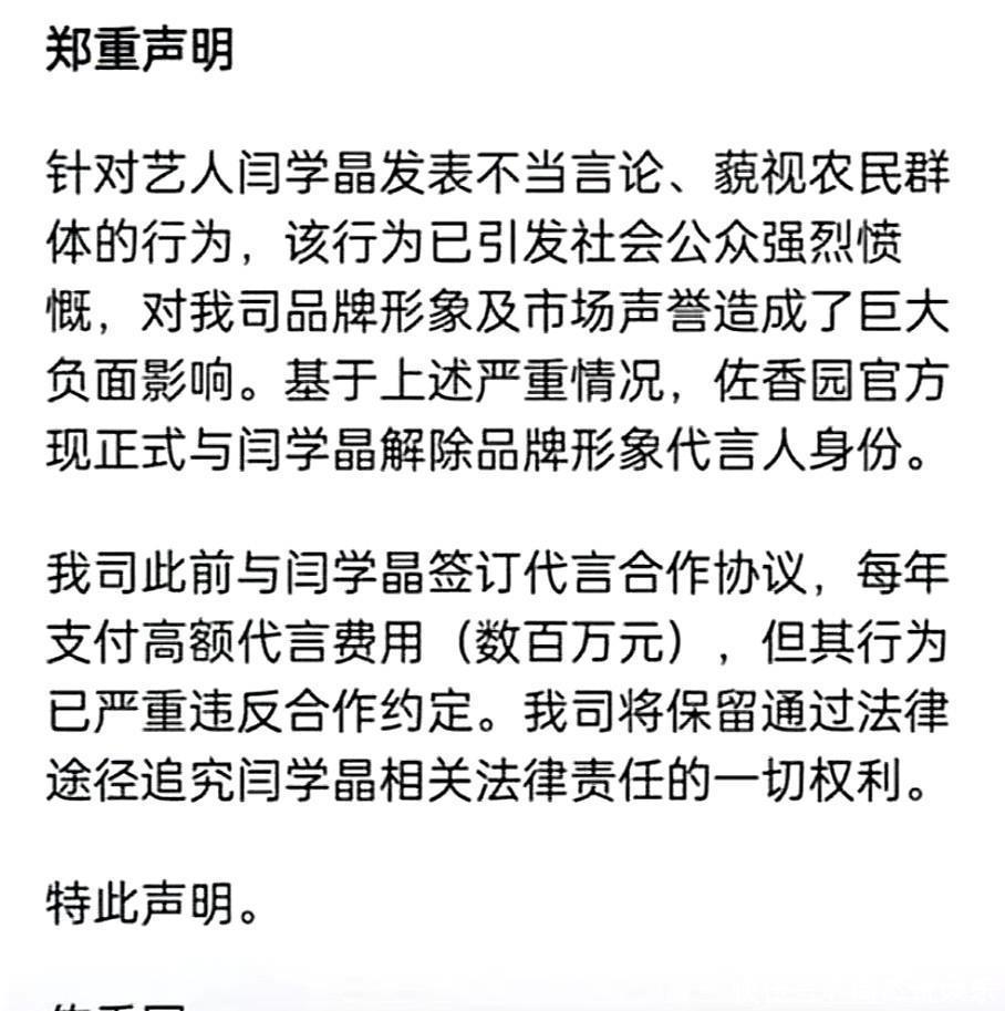 最受影响的自然是闫学晶。她只能给评论开启一键防护的功能,还让儿子儿媳也这么做,最致命的是闫学晶代言了将近15年的品牌,在消费者的重压之下,不得不解除与她的合约。